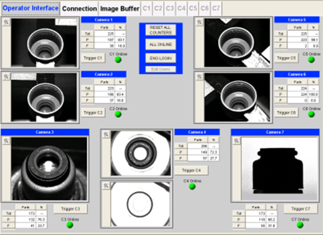 - Custom vision user interface displays inspection results and gives user control of system parameters